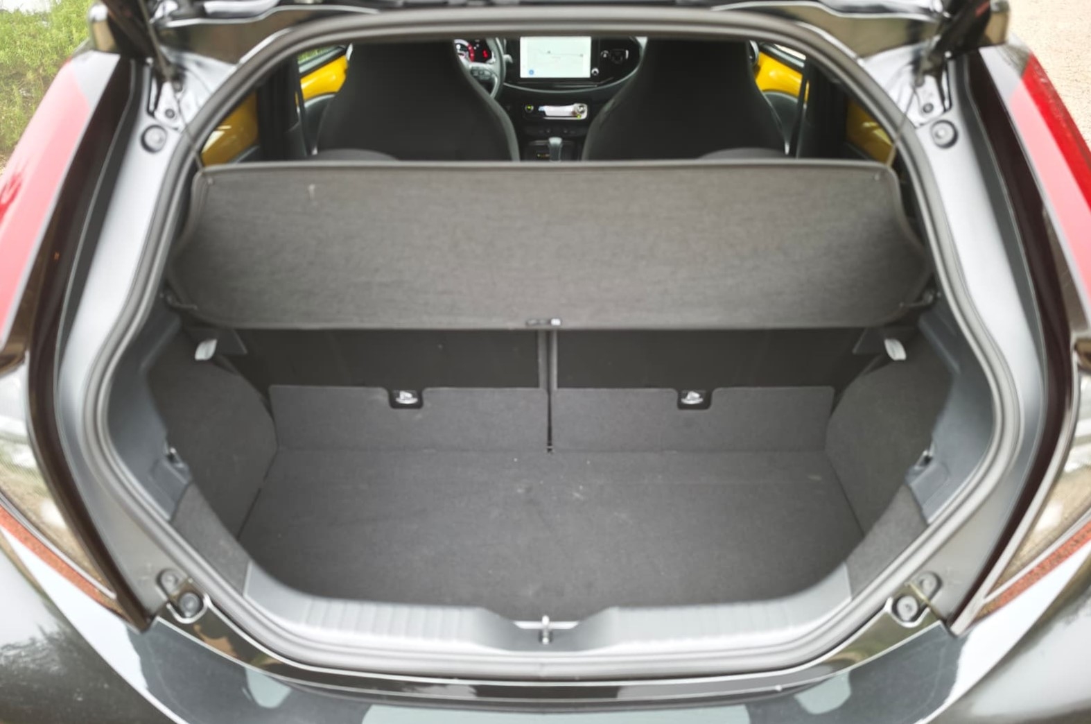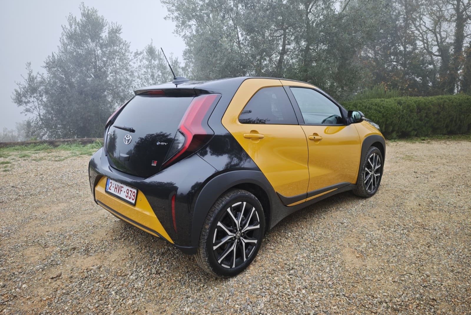 Côté châssis, notre version d'essai GR Sport dispose de réglages de suspension et de direction spécifiques. La première est plus ferme, et la seconde plus directe, pour donner un peu plus de sensations. C'est léger, et nous n'avons de toute façon pas pu comparer avec une autre finition, aux réglages plus souples. En tout cas le comportement est assez vif, rassurant sur le sec. Mais sur chaussée humide, il faudra lever le pied. L'étroitesse des pneus rend légère l'accroche du train avant et l'Aygo X a tendance à tirer tout droit facilement, et élargir la trajectoire, tandis que les aides à la conduite électroniques interviennent mollement. Et si les pneus sont étroits, ils chaussent des jantes de 18 pouces sur la finition GR Sport, ce qui donnent quelques tamponnades sur les raccords de chaussée.