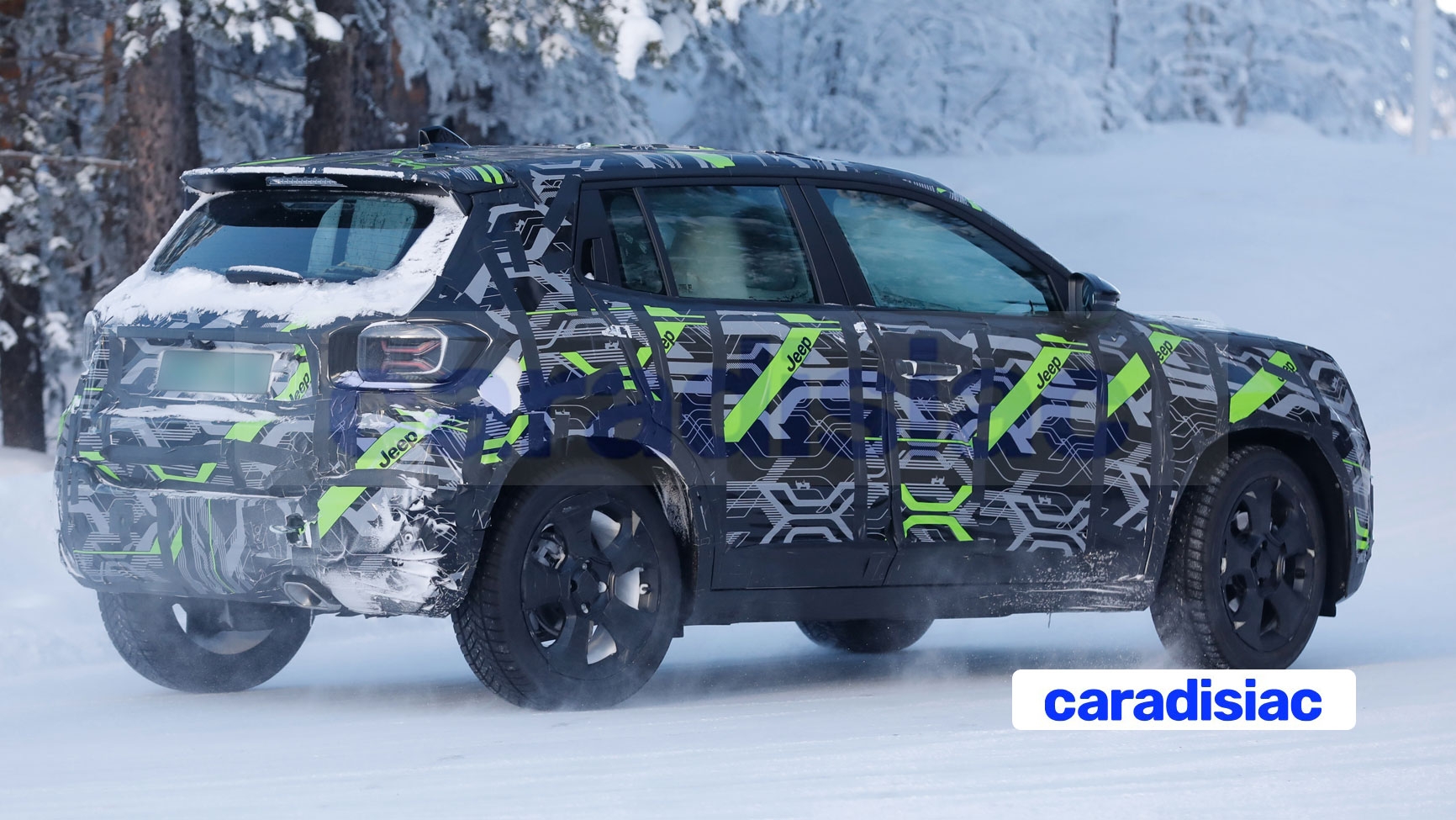En regardant avec attention le Jeep Avenger photographié, on se rend compte que si les projecteurs ne semblent pas avoir été touchés par le lifting, ce n’est pas le cas des antibrouillards qui sont désormais placés plus bas dans le bouclier avant. Quant à la calandre, le fait qu’elle soit complètement camouflée indique une possible modification du style. Tout en conservant les sept fentes qui sont un signe distinctif pour toutes les calandres des modèles Jeep, on découvrira peut-être des segments rétroéclairés, puisque les calandres lumineuses sont à la mode. On pourrait retrouver cela sur les modèles électriques et hybrides du Jeep Avenger restylé.